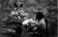 Con 30 kilos de peso en la mochila, José Campos el "manis", a sus sesenta y tantos camina la montaña para pernoctar dos o tres días en lo alto. El ya ha estado en cumbres del Uruguay, Perú, y Ecuador, haciendo lo mismo que hoy hace aquí ejercitándose para el rescatismo. En sus 28 años de experiencia en la montaña, ha visto muchas cosas y su actividad den la Patrulla 11 es única dice: No tenemos dinero, ni los grandes aparatos, sólo tenemos el equipo austero y mucha voluntad de servicio al prójimo.
